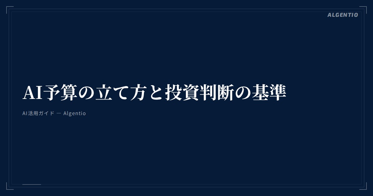 AI予算の立て方と投資判断の基準【中堅企業向け完全ガイド】
