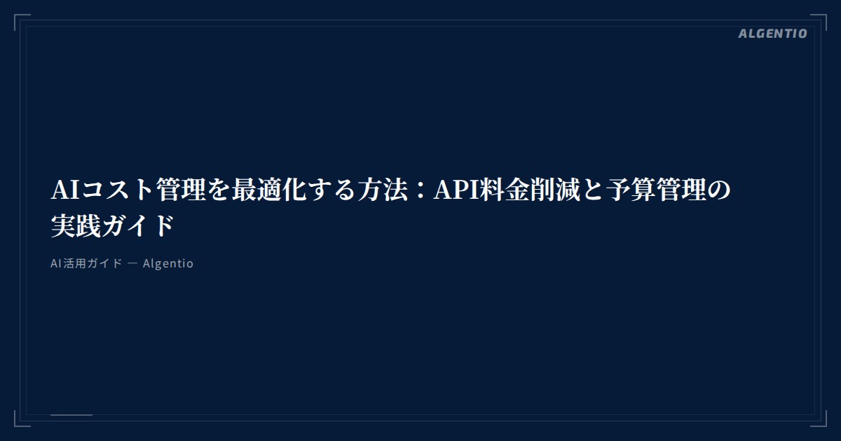 AIコスト管理を最適化する方法:API料金削減と予算管理の実践ガイド