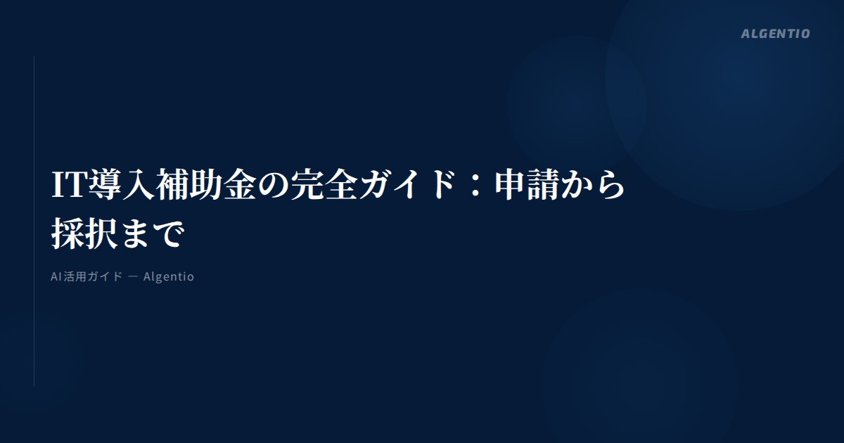 【2026年版】IT導入補助金の完全ガイド:申請から採択まで